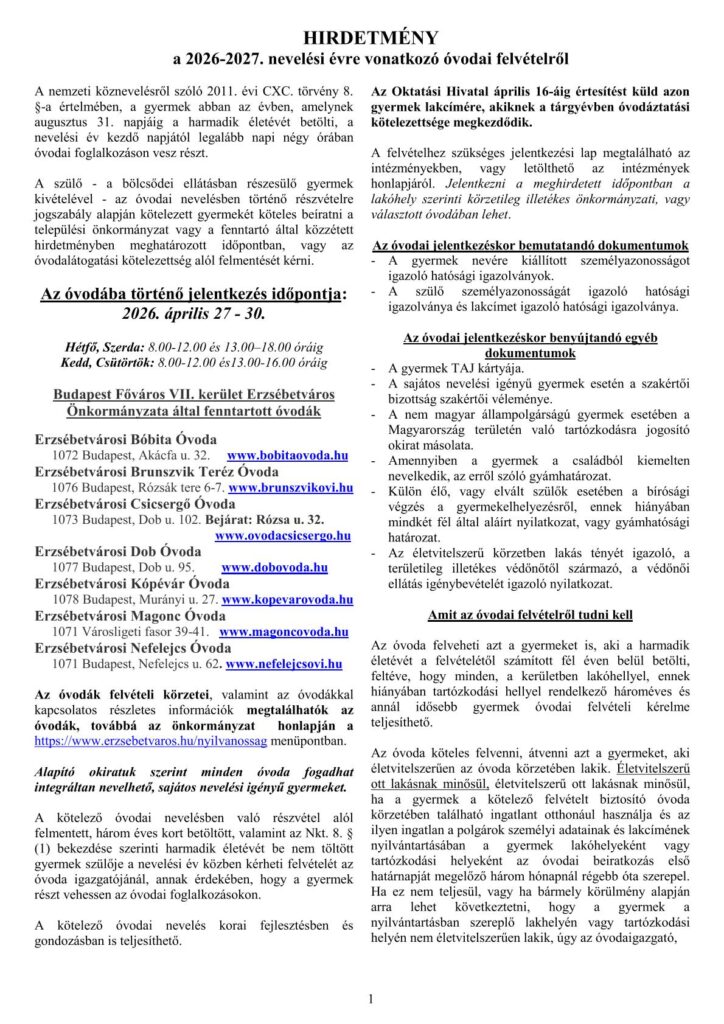 Óvodai beiratkozás